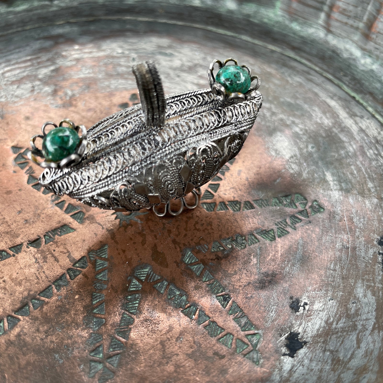 Rita discovered many unique ethnographic amulets and pendants during her travels, seeking them out as these pendants were essential design elements in her necklaces. She favored using old silver pendants, stone pendants, and unusual amulets from just about everywhere.