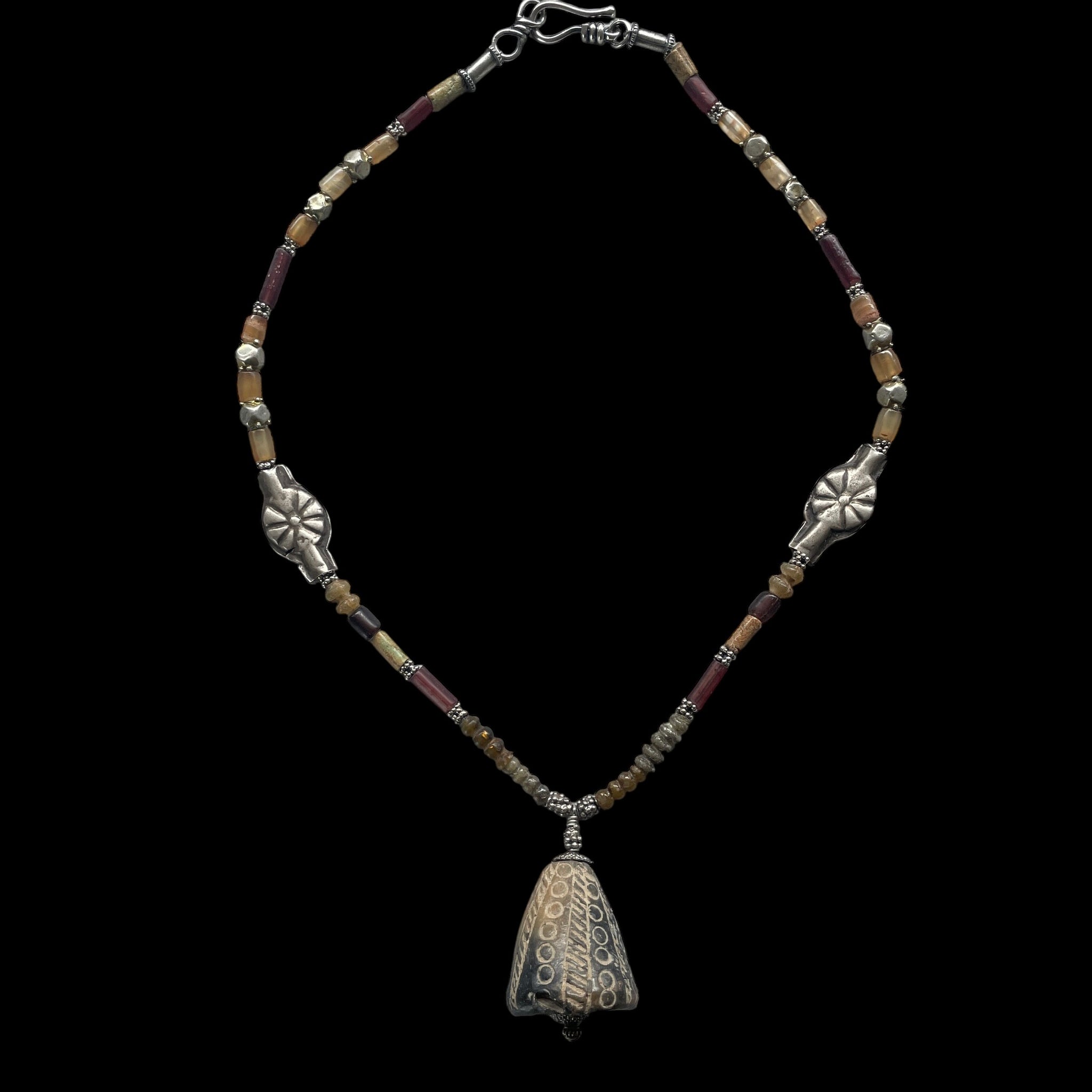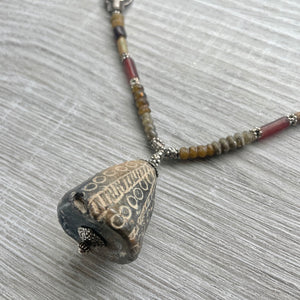 Ancient Glass, Stone, Ceramic with Silver Beaded Necklace - Rita Okrent Collection (NE580)